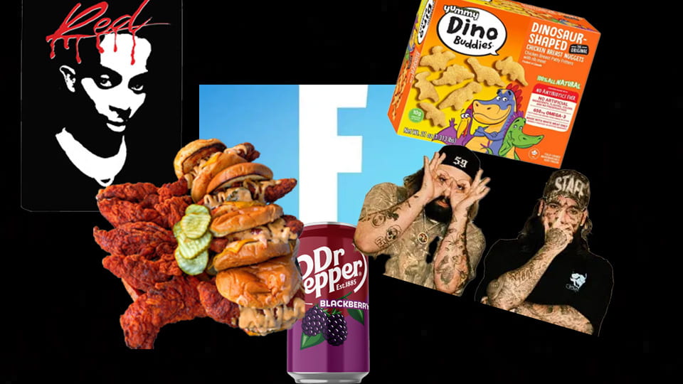 I put these pictures in because they reflect who I am and what I love. I love Dino nuggets and eat them whenever I can. I put Daves Hot Chicken because it is very yummy, and I enjoy eating it. I also like playboi carti so I inserted his Whole lotta red album. I also like $uicideboy$ so I inserted them because their music is just amazing. I also went to their concert and it was very fun.